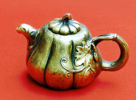 銅茶壺金屬用具是指由金、銀、銅、鐵、錫等金屬材料制作而成的器具。它是我國最古老的日用器具之一,早在公元前18世紀(jì)至公元前221年秦始皇統(tǒng)一中國之前的1500年間,青銅器就得到了廣泛的應(yīng)用,先人用青銅制作盤盛水,制作爵、尊盛酒,這些青銅器皿自然也可用來盛茶。自秦漢至六朝,茶葉作為飲料已漸成風(fēng)尚,茶具也逐漸從與其他飲具共用中分離出來。大約到南北朝時(shí),我國出現(xiàn)了包括飲茶器皿在內(nèi)的金銀器具。到隋唐時(shí),金銀器具的制作達(dá)到高峰。本世紀(jì)80年代中期,陜西扶風(fēng)法門寺出土的一套由唐僖宗供奉的鎏金茶具,可謂是金屬茶具中罕見的稀世珍寶。但從宋代開始,古人對(duì)金屬茶具褒貶不一。貯茶錫罐元代以后,特別是從明代開始,隨著茶類的創(chuàng)新,飲茶方法的改變,以及陶瓷茶具的興起,才使包括銀質(zhì)器具在內(nèi)的金屬茶具逐漸消失,尤其是用錫、鐵、鉛等金屬制作的茶具,用它們來煮水泡茶,被認(rèn)為會(huì)使;茶味走樣以致很少有人使用。但用金屬制成貯茶器具,如錫瓶、錫罐等,卻屢見不鮮。這是因?yàn)榻饘儋A茶器具的密閉性要比紙、竹、木、瓷、陶等好,具有較好的防潮、避光性能,這樣更有利于散茶的保藏。因此,用錫制作的貯茶器具,至今仍流行于世。