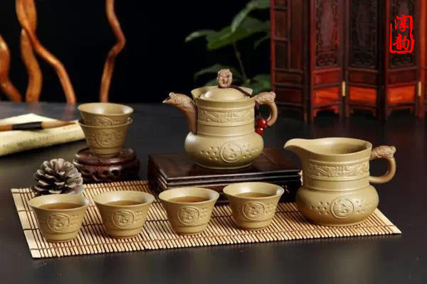 陶器中的佼佼者首推宜興紫砂茶具,早在北宋初期就已崛起,成為別樹一幟的優(yōu)秀茶具,明代大為流行。紫砂壺和一般的陶器不同,其里外都不敷釉,采用當地的紫泥、紅泥、團山泥摶制焙燒而成。