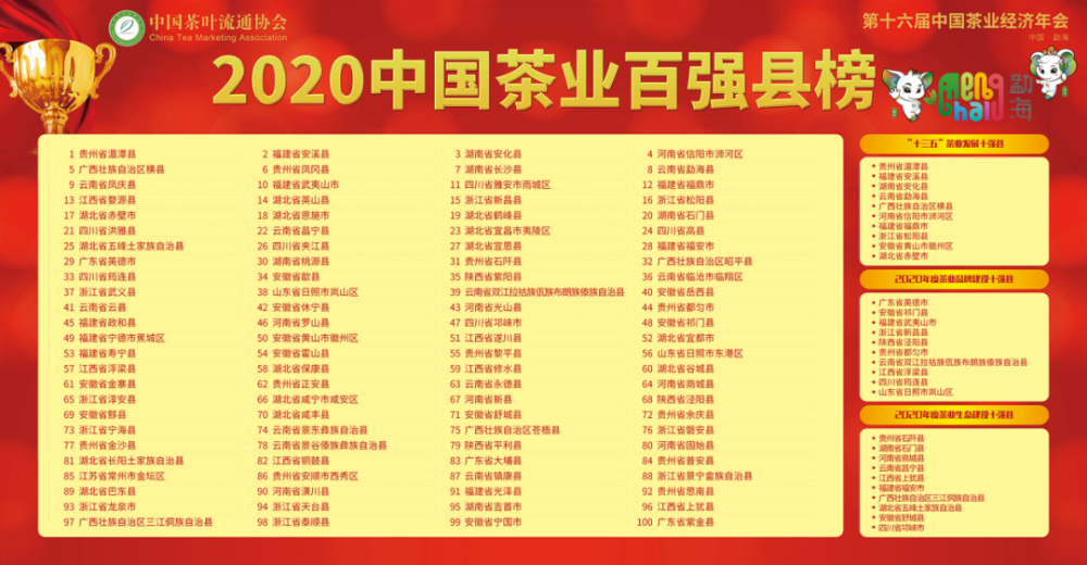 2020中國(guó)茶業(yè)百?gòu)?qiáng)縣名單公布,紫金入圍中國(guó)茶業(yè)百?gòu)?qiáng)縣