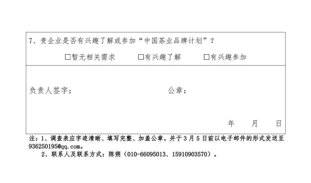關(guān)于開展茶企品牌發(fā)展服務(wù)需求調(diào)查的通知
