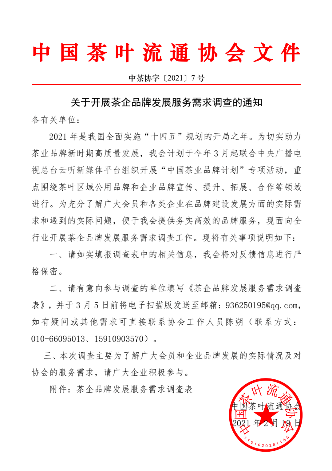 中國(guó)茶葉流通協(xié)會(huì)關(guān)于開展茶企品牌發(fā)展服務(wù)需求調(diào)查的通知