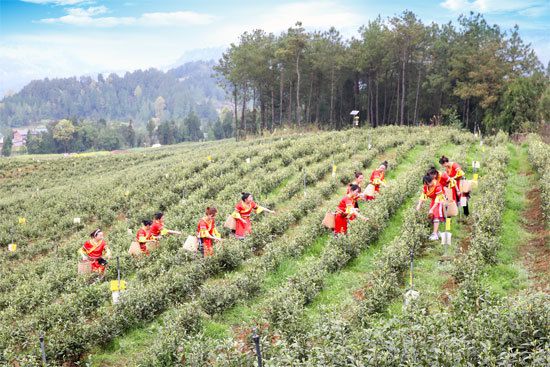 • 貴州省丹寨縣組織工人采茶制茶