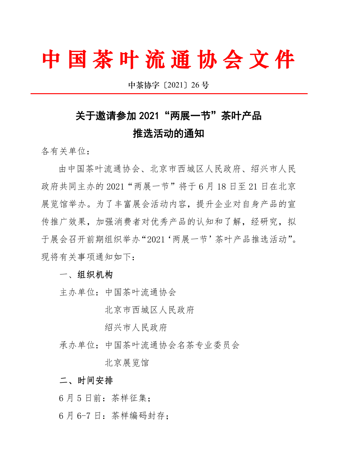 中國茶葉流通協(xié)會關(guān)于邀請參加2021“兩展一節(jié)”茶葉產(chǎn)品推選活動的通知