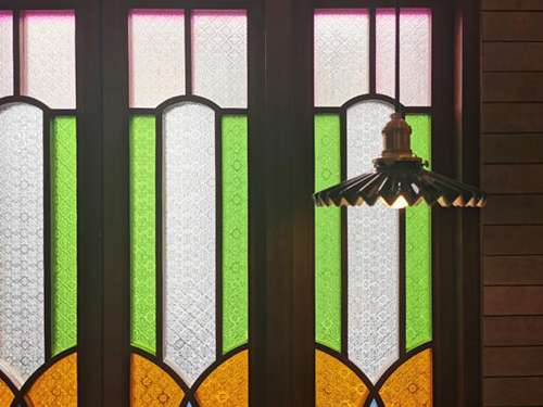 滿洲窗是嶺南建筑的一個(gè)重要符號,彩色玻璃篩取入室光線,同時(shí)窗格演變?yōu)檠b飾紋樣,透過海棠花玻璃,物體的輪廓逐漸消散,斑駁迷離而絢麗散碎。