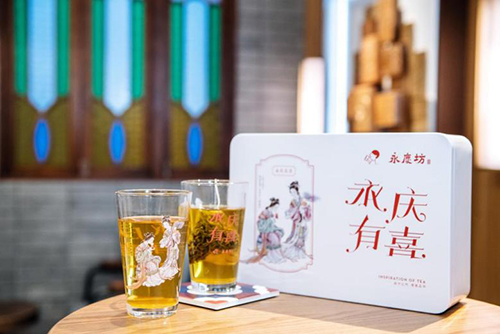 「永慶有喜」非遺禮盒。永慶坊和喜茶,聯(lián)合廣彩國家技藝傳承人翟惠玲老師,從其經(jīng)典作品《松下品茗》中汲取靈感,共同推出「永慶有喜」兩個(gè)非遺禮盒,呈現(xiàn)傳奇廣彩與茶文化的匠心融合。