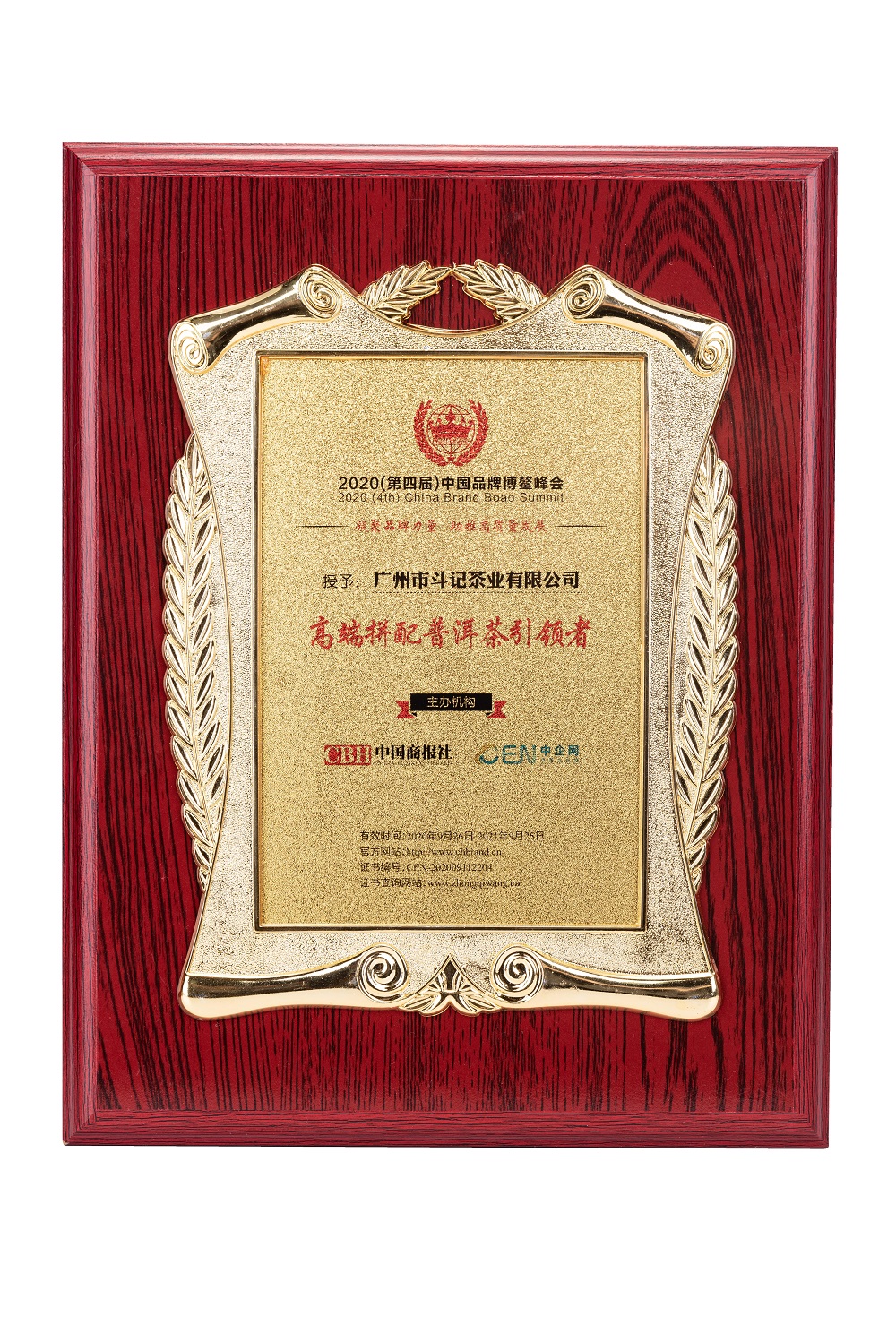 斗記普洱茶在2020中國品牌博鰲峰會上榮獲三項大獎